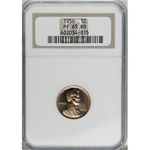 <B>1950 1C PR65 Red NGC.</B></I> NGC Census: (151/214). PCGS Population (409/272). Mintage: 51,386. Numismedia Wsl. Price for NGC/PCGS coin in PR65: $47. (#3359)<BR><BR><B>Coin Engraver:</B> Victor D. Brenner<BR><BR><b>Shipping:</b> Coins & Currency (<a target="_blank" href="http://www.heritageauctions.com/common/shipping.php">view shipping information</a>)