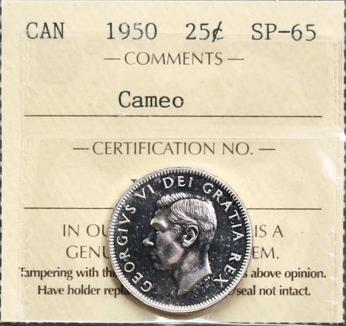 1950 25¢ ICCS Gem SPECIMEN-65 Cameo. Gem mirror appeal with hint of Cameo finish.