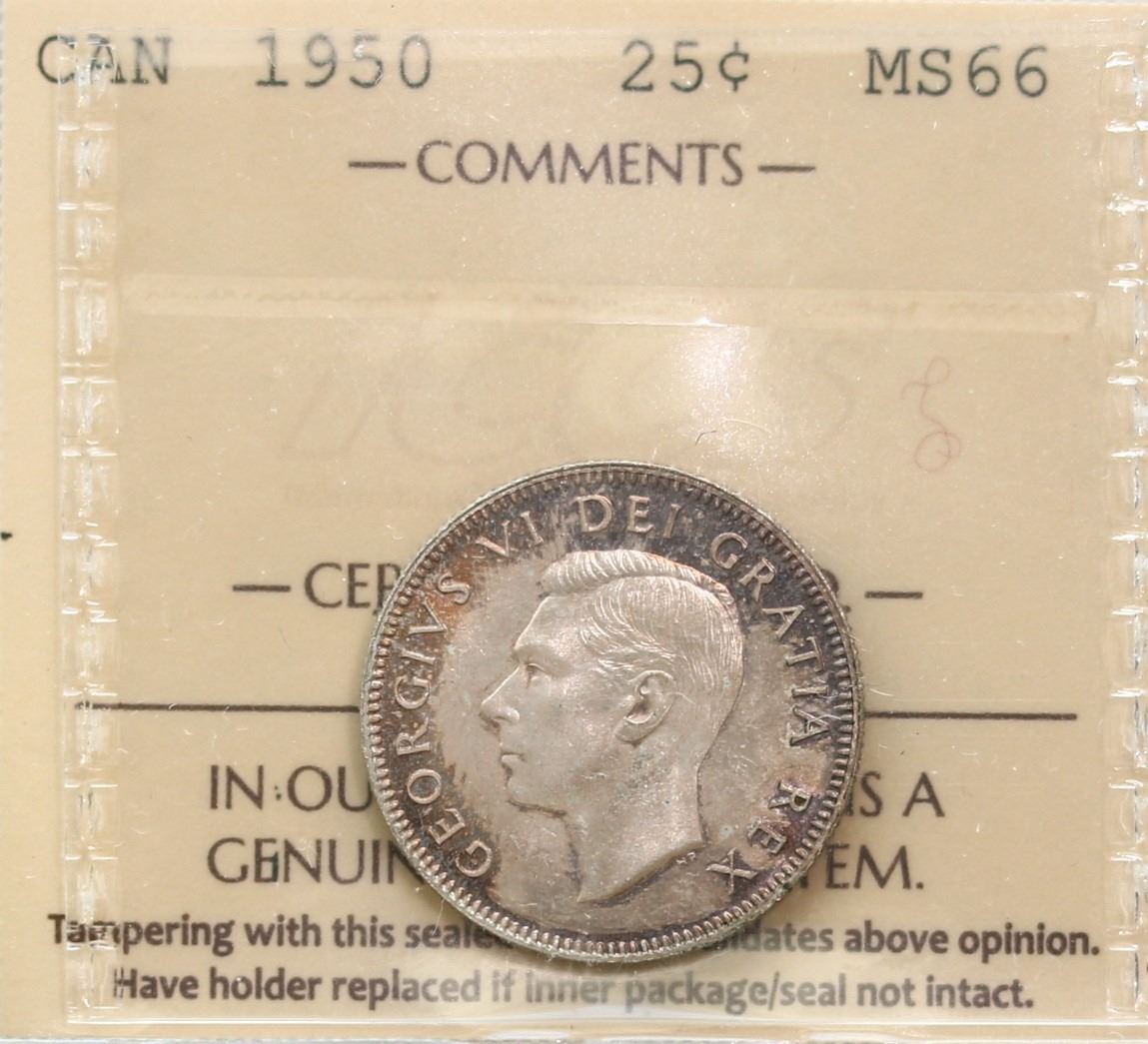 1950 25¢ ICCS Superb Gem Mint State-66 Superb example with great eye appeal. A superior example. Worth a premium bid.