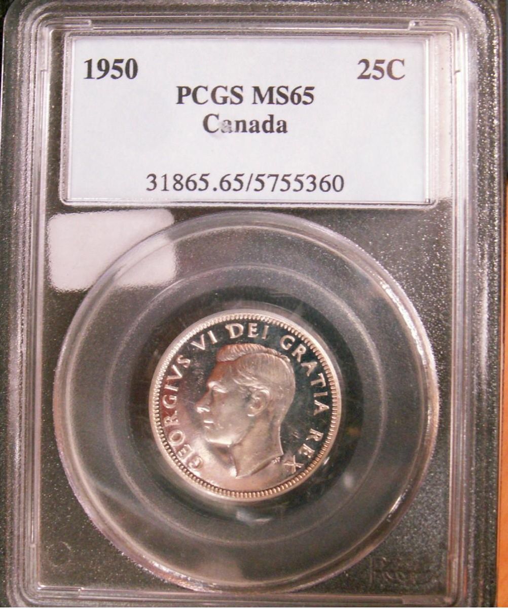 1950 25¢ PCGS MS65. Blast white with light Cameo finish.