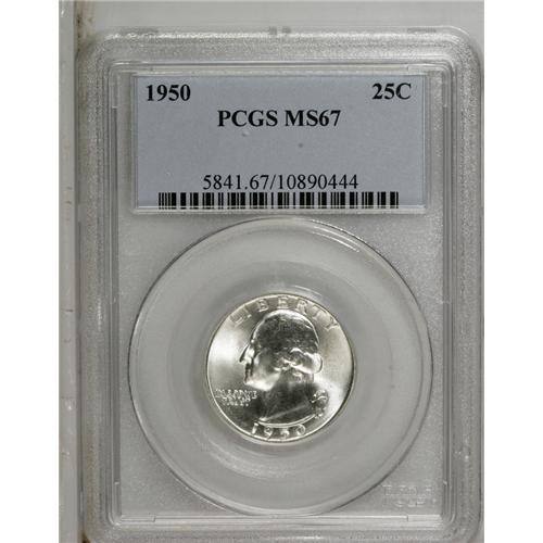 1950 25C MS67 PCGS. Highly lustrous and essentially un