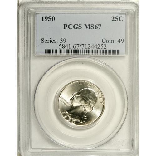1950 25C MS67 PCGS. This Superb Gem is brilliant save