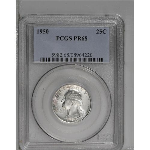 <B>1950<25C> PR68 PCGS.</B></I> A deeply mirrored specimen with dark violet toning in parts of the fields. The lightly frosted devices are sharp. Population: 11 in 68, 0 finer (7/06).