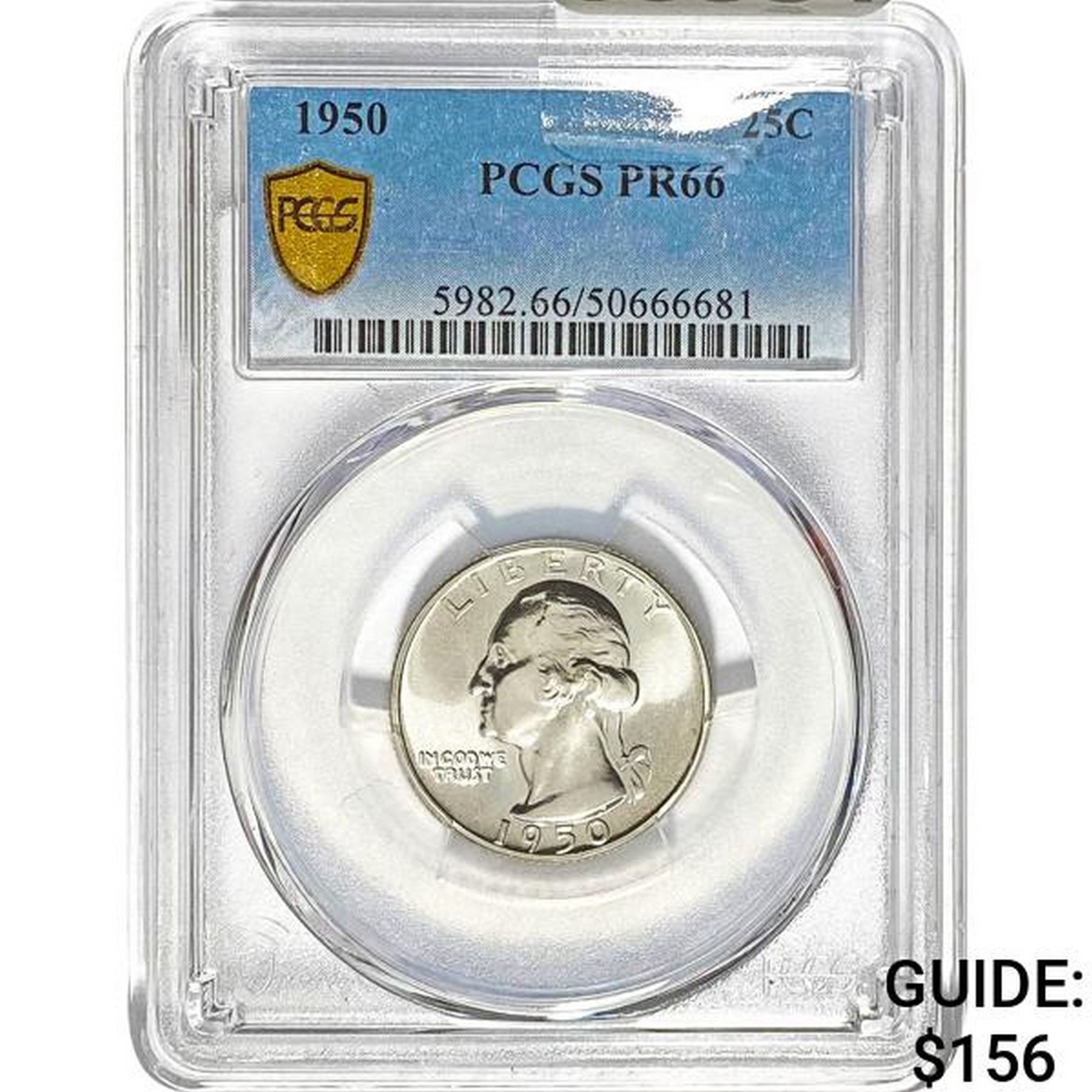 1950 25C Washington Quarter PCGS PR66