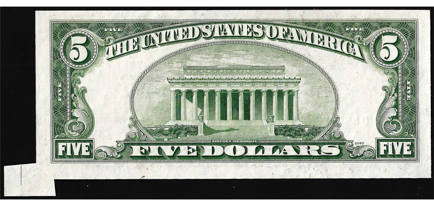 One 1950 $5 Federal Reserve Butterfly Fold Error Note.