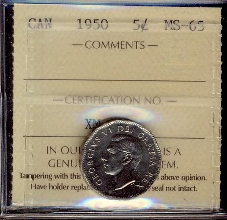 1950 5¢ ICCS MS65.