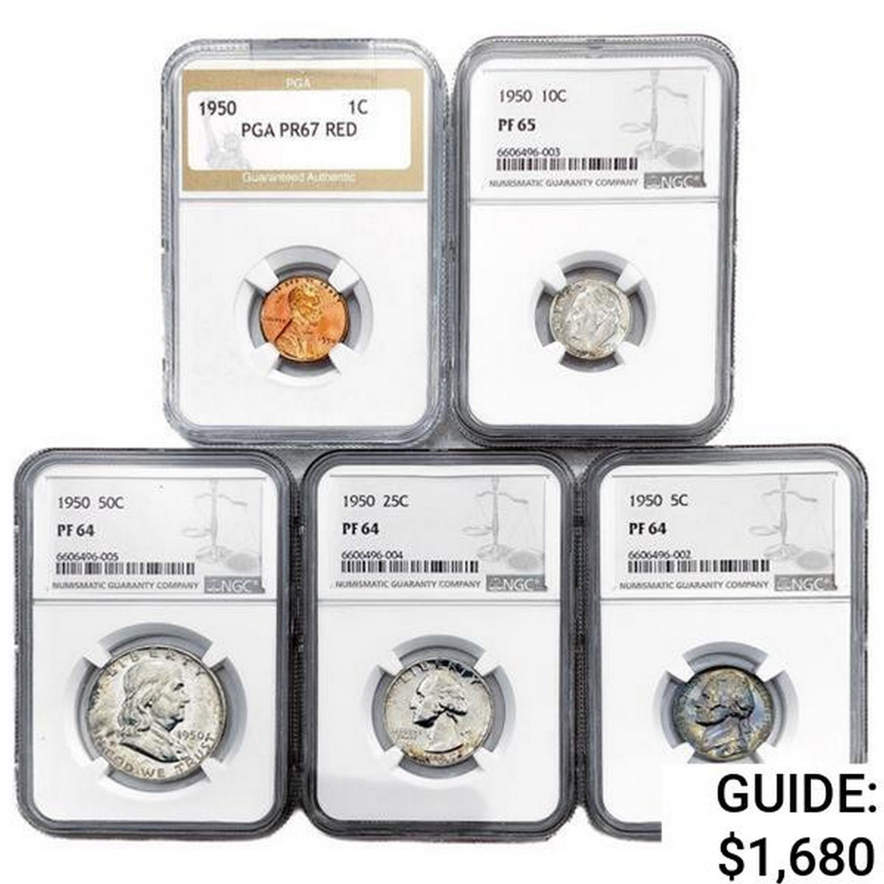 1950 [5] US Coinage Set PGA/NGC PF64-67 RED
