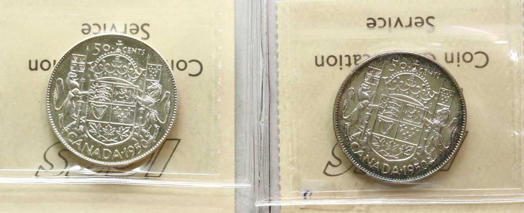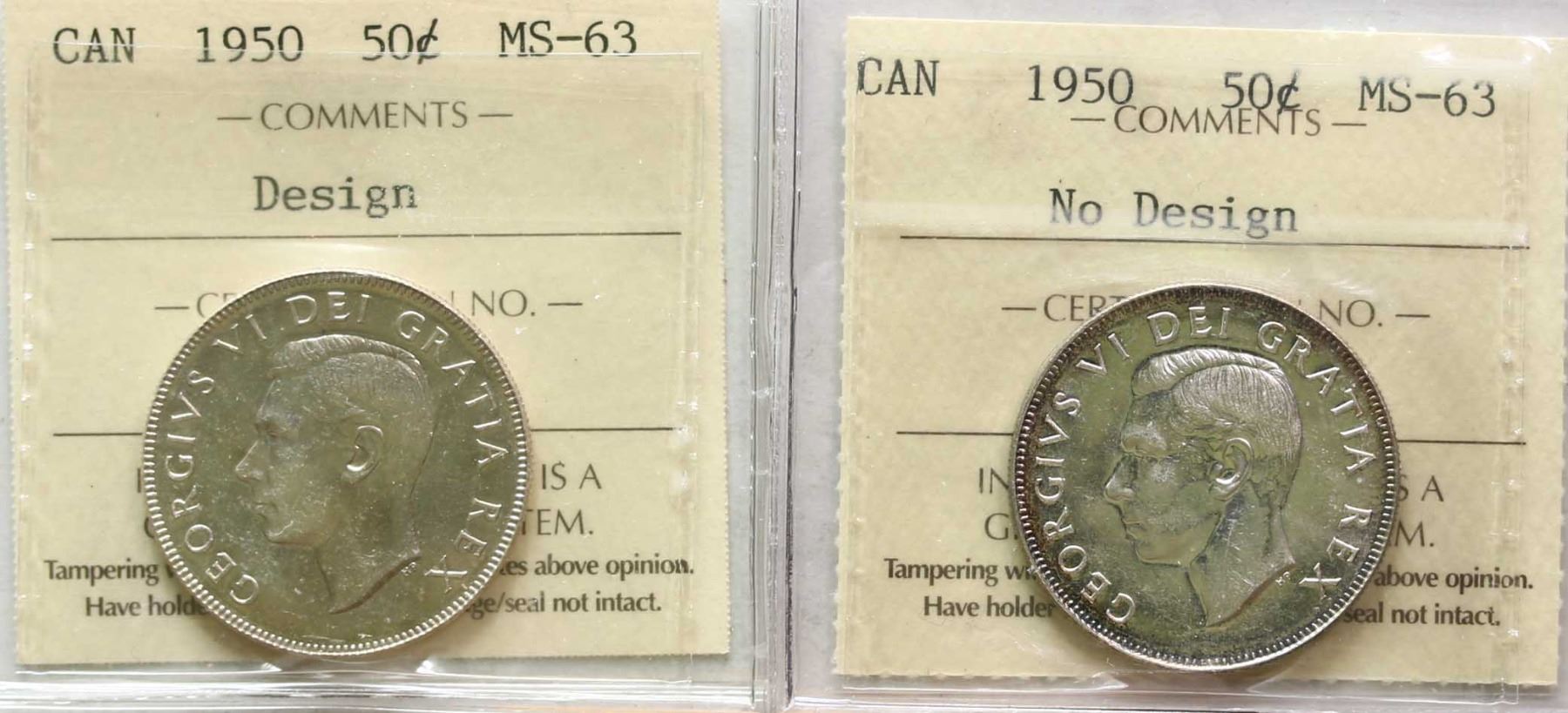 1950 50¢ "Design" & 1950 "No design" Both coins ICCS Choice Mint State-63.