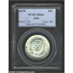 1950 50C Booker T. Washington MS66 PCGS. Mostly frosty-white in sheen, the uncommonly smooth surface