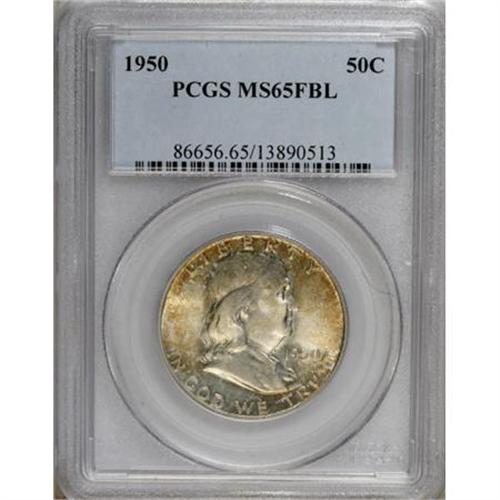 <B>1950 50C MS65 Full Bell Lines PCGS.</B></I> PCGS Population (750/151). NGC Census: (192/38). Numismedia Wsl. Price for NGC/PCGS coin in MS65: $160. (#86656)<BR><BR><b>Shipping:</b> Coins & Currency (<a target="_blank" href="http://www.heritageauctions.com/common/shipping.php">view shipping information</a>)