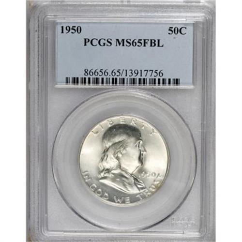 <B>1950 50C MS65 Full Bell Lines PCGS.</B></I> PCGS Population (771/156). NGC Census: (194/39). Numismedia Wsl. Price for NGC/PCGS coin in MS65: $160. (#86656)<BR><BR><b>Shipping:</b> Coins & Currency (<a target="_blank" href="http://www.heritageauctions.com/common/shipping.php">view shipping information</a>)