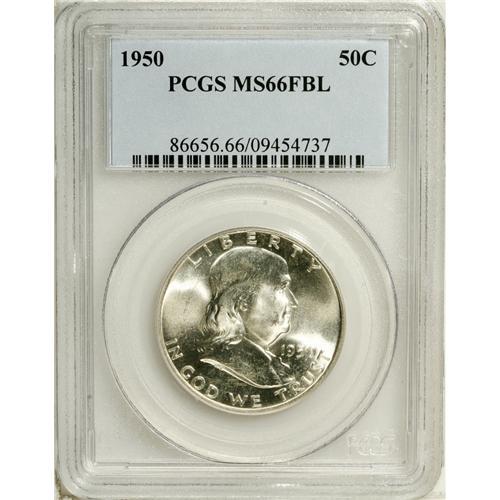 <B>1950 50C MS66 Full Bell Lines PCGS.</B></I> Sharply impressed with remarkable detail, this piece far surpasses the basic definition of a Full Bell Lines piece. Only a few small marks appear on the highly lustrous, untoned surfaces. PCGS has certified a mere two Full Bell Lines pieces finer (10/06).<BR><BR><b>Shipping:</b> Coin/Currency (<a target="_blank" href="http://www.heritageauctions.com/common/shipping.php">view shipping information</a>)