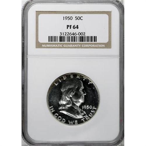 <B>1950 50C PR64 NGC.</B></I> . NGC Census: (475/936). PCGS Population (1017/1376). Mintage: 51,386. Numismedia Wsl. Price for NGC/PCGS coin in PR64: $365. (#6691)<BR><BR><B>Coin Engraver:</B> John R. Sinnock<BR><BR><b>Shipping:</b> Coins & Currency (<a target="_blank" href="http://www.heritageauctions.com/common/shipping.php">view shipping information</a>)