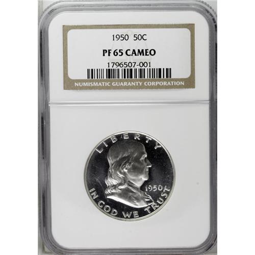 1950 50C PR65 Cameo NGC. A razor-sharp and gorgeously