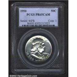 1950 50C PR65 Cameo PCGS. The lower obverse border and the upper reverse periphery have a hint of co