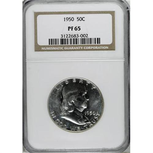 <B>1950 50C PR65 NGC.</B></I> . NGC Census: (481/455). PCGS Population (1000/376). Mintage: 51,386. Numismedia Wsl. Price for NGC/PCGS coin in PR65: $450. (#6691)<BR><BR><B>Coin Engraver:</B> John R. Sinnock<BR><BR><b>Shipping:</b> Coins & Currency (<a target="_blank" href="http://www.heritageauctions.com/common/shipping.php">view shipping information</a>)
