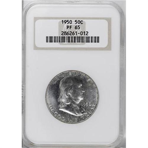 <B>1950 50C PR65 NGC.</B></I> NGC Census: (482/459). PCGS Population (1003/377). Mintage: 51,386. Numismedia Wsl. Price for NGC/PCGS coin in PR65: $450. (#6691)<BR><BR><B>Coin Engraver:</B> John R. Sinnock<BR><BR><b>Shipping:</b> Coins & Currency (<a target="_blank" href="http://www.heritageauctions.com/common/shipping.php">view shipping information</a>)