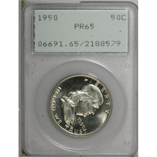 <B>1950 50C PR65 PCGS.</B></I> PCGS Population (992/376). NGC Census: (473/451). Mintage: 51,386. Numismedia Wsl. Price for NGC/PCGS coin in PR65: $450. (#6691)<BR><BR><B>Coin Engraver:</B> John R. Sinnock<BR><BR><b>Shipping:</b> Coins & Currency (<a target="_blank" href="http://www.heritageauctions.com/common/shipping.php">view shipping information</a>)