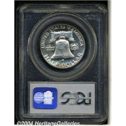 <B>1950<50C> PR67 Cameo PCGS.</B></I> Between 1950 and 1970 proof dies were not sandblasted or chrome plated, which means that cameo examples were limited to the first coins produced from a new pair of dies. This is another in a long and very impressive run of cameo examples of this key issue from the 1950s. Brilliant overall, except for a faint accent of golden at the top and bottom of the reverse, the devices are noticeably white against the deeply mirrored proof fields. An exceptional, high grade 1950 proof. Population: 2 in 67 Cameo, 0 finer (7/04). <BR><BR><B>Important notice:</B> Heritage usually auctions material at the rate of 200-250 lots per hour. On some occasions eBay Live bid software or the Internet may not be able to keep up with the pace of the auction. We recommend placing a realistic absentee bid now as insurance to avoid disappointment. Occasionally the auctioneer may eliminate or reject an eBay Live bid, and the auctioneer may also reopen a lot after the close of the eBay live bidding (usually because we missed an audience bid), and may reject your bid even if it shows you as the winning bidder. By bidding via eBay Live, you agree that Heritage may award the lot to another bidder at its sole discretion under the circumstances described above or any other reasonable circumstances. Since eBay bids are not shown to us until we open the lot on the floor, we treat those bids just like floor bids. In most cases the floor responds before the eBay bid is presented to us, due to Internet lag time, so for consistency we have made it a policy that floor bids are always considered first over tie eBay live bids. Also please note that all Heritage lots purchased through eBay Live carry a 20% Buyer's Premium. Please make sure you read the Terms and Conditions before you bid. </span></font></tr></table></td></tr></table>