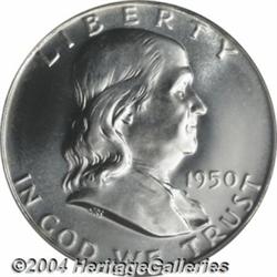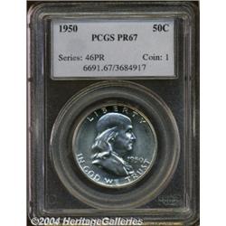 <B>1950<50C> PR67 PCGS.</B></I> Uniformly brilliant with both sides presenting an uniform, satiny look. Even close examination fails to disclose any mentionable marks or other surface distractions. A perfect addition to a collection that favors brilliance over cameo contrast.<BR><I>From the JFS Collection.</B></I> <BR><BR><B>Important notice:</B> Heritage usually auctions material at the rate of 200-250 lots per hour. On some occasions eBay Live bid software or the Internet may not be able to keep up with the pace of the auction. We recommend placing a realistic absentee bid now as insurance to avoid disappointment. Occasionally the auctioneer may eliminate or reject an eBay Live bid, and the auctioneer may also reopen a lot after the close of the eBay live bidding (usually because we missed an audience bid), and may reject your bid even if it shows you as the winning bidder. By bidding via eBay Live, you agree that Heritage may award the lot to another bidder at its sole discretion under the circumstances described above or any other reasonable circumstances. Since eBay bids are not shown to us until we open the lot on the floor, we treat those bids just like floor bids. In most cases the floor responds before the eBay bid is presented to us, due to Internet lag time, so for consistency we have made it a policy that floor bids are always considered first over tie eBay live bids. Also please note that all Heritage lots purchased through eBay Live carry a 20% Buyer's Premium. Please make sure you read the Terms and Conditions before you bid. </span></font></tr></table></td></tr></table>