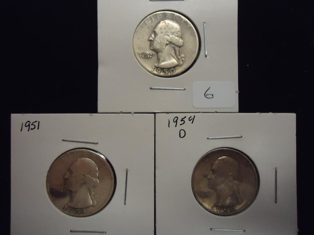 1950,51 & 54-D WASHINGTON SILVER QUARTERS