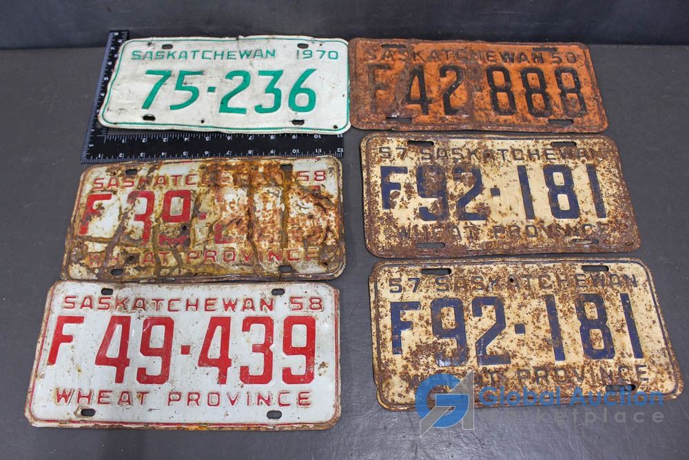 1950, 57(pair), 58 and 70 Saskatchewan License Plates