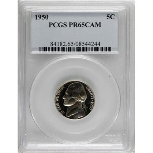 <B>1950 5C PR65 Cameo PCGS.</B></I> PCGS Population (25/99). NGC Census: (30/112). Numismedia Wsl. Price for NGC/PCGS coin in PR65: $150. (#84182)<BR><BR><b>Shipping:</b> Coins & Currency (<a target="_blank" href="http://www.heritageauctions.com/common/shipping.php">view shipping information</a>\)