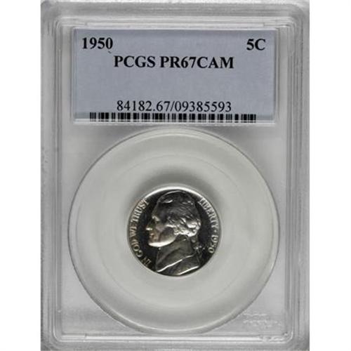 <B>1950 5C PR67 Cameo PCGS.</B></I> PCGS Population (33/0). NGC Census: (46/6). Numismedia Wsl. Price for NGC/PCGS coin in PR67: $550. (#84182)<BR><BR><b>Shipping:</b> Coins & Currency (<a target="_blank" href="http://www.heritageauctions.com/common/shipping.php">view shipping information</a>)