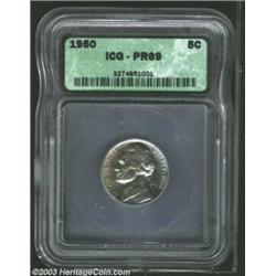<TR><TD width="100%"><TABLE cellSpacing=1 cellPadding=3 width="100%" border=0><TBODY><TR><TD width="100%" bgColor=#79735c><FONT face=arial color=#ffffff size=3><B>Description</B> </FONT></TD></TR><TR><TD width="100%" bgColor=#ffffff><FONT face=arial size=2><B>1950 5C PR69 ICG.</B></I> The reflective surfaces of this nearly-perfect Gem are shaded in highly attractive icy pink and periwinkle shades. Uncommonly well-preserved, both PCGS and NGC have not awarded the PR69 grade to a brilliant 1950 nickel. </FONT></TD></TR></TBODY></TABLE></TD></TR></TBODY></TABLE><BR><A name=PricesRealized></A><TABLE cellSpacing=0 cellPadding=0 width="100%" bgColor=#000000 border=0><TBODY><TR><TD width="100%"><TABLE cellSpacing=1 cellPadding=3 width="100%" border=0><TBODY><TR><TD width="100%" bgColor=#79735c><A name=PR><FONT face=arial color=#ffffff size=3><B>Previous Prices from Heritage Auctions</B> </FONT></A></TD></TR><TR><TD bgColor=#f6f6ed>No Prior Data Recorded </TD></TR><TR><TD bgColor=#ffffff><FONT face=arial size=1 ?>PLEASE NOTE: All prices realized reflect the final hammer price PLUS the buyer's premium in auctions that charge a buyer's premium. Each item has a notation at the top of the listing indicating whether that lot included a buyer's premium. Example: A item that sells with a final hammer price of $100 and a 20% buyer's premium will display with a price realized of $120. All information listed is intended to be as accurate as possible, but errors are possible. Please use this guide carefully and inform us of any inaccuracies. </FONT></TD></TR></TBODY></TABLE></TD></TR></TBODY></TABLE><BR><TABLE cellSpacing=0 cellPadding=0 width="100%" bgColor=#000000 border=0><TBODY><TR><TD width="100%"><TABLE cellSpacing=1 cellPadding=3 width="100%" border=0><TBODY><TR><TD width="100%" bgColor=#79735c colSpan=6><FONT face=arial color=#ffffff size=3><B>Price Guide*</B> </FONT></TD></TR><TR bgColor=#f6f6ed><TD align=middle><B>Grade</B> </TD><TD align=middle><B>Coin World<BR>(Trends)</B> </TD><TD align=middle><B>Numismedia<BR>Retail</B> </TD><TD align=middle><B>Numismedia<BR>Wholesale</B> </TD><TD align=middle><B>Coin<BR>Universe</B> </TD><TD align=middle><B>Heritage<BR>Value Index</B> </TD></TR><TR bgColor=#ffffff><TD align=middle>68</TD><TD align=right>---</TD><TD align=right>---</TD><TD align=right>---</TD><TD align=right>$550.00</TD><TD align=right>$385.00</TD></TR><TR style="FONT-WEIGHT: bold" bgColor=#cccfdd><TD align=middle>69</TD><TD align=right>---</TD><TD align=right>---</TD><TD align=right>---</TD><TD align=right>---</TD><TD align=right>---</TD></TR><TR bgColor=#ffffff><TD align=middle>70</TD><TD align=right>---</TD><TD align=right>---</TD><TD align=right>---</TD><TD align=right>---</TD><TD align=right>---</TD></TR><TR bgColor=#ffffff><TD colSpan=6><FONT size=1>*All information listed is intended to be as accurate as possible, but errors are possible. No item may be returned or refused based on this information which is provided as a service to our customers. You should contact each pricing source directly to determine the accuracy of this information. </FONT></TD></TR></TBODY></TABLE></TD></TR></TBODY></TABLE><BR><TABLE cellSpacing=0 cellPadding=0 width="100%" bgColor=#000000 border=0><TBODY><TR><TD width="100%"><TABLE cellSpacing=1 cellPadding=3 width="100%" border=0><TBODY><TR><TD width="100%" bgColor=#79735c><FONT face=arial color=#ffffff size=3><B>Population Guide</B> </FONT></TD></TR><TR bgColor=#ffffff><TD align=middle></TD></TR></TBODY></TABLE></TD></TR></TBODY></TABLE><BR><TABLE cellSpacing=0 cellPadding=0 width="100%" bgColor=#000000 border=0><TBODY><TR> Important notice: We expect to be auctioning lots at the rate of 200-250 per hour. On occasion eBay live bid software cannot keep up with the pace of the auctions where 4-5 lots per minute can hammer down, so we recommend that you place a realistic absentee bid now as insurance to avoid disappointment. Also please note that all Heritage/CAA lots purchased through eBay Live carry a 20% Buyer's Premium. Please make sure you read the Terms and Conditions.