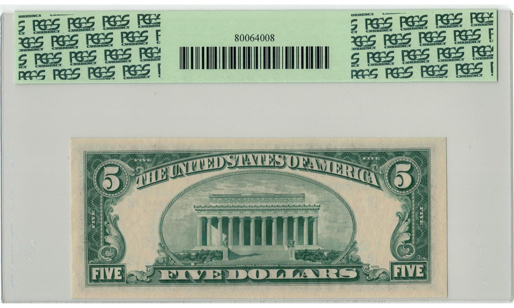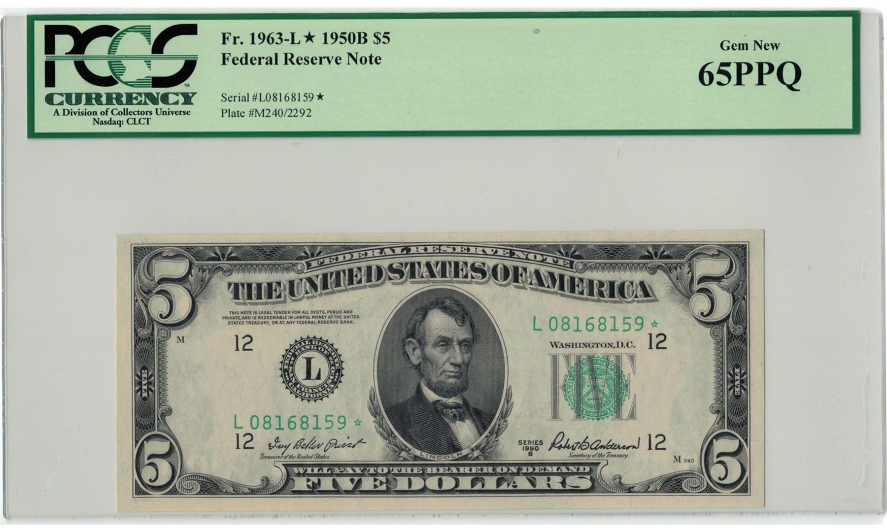 1950-B $5 PCGS Gem New 65PPQ Federal Reserve Note. PCGS Certified.