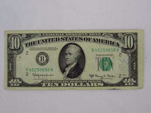 1950 Ten Dollar Bill Federal Reserve B series B45250658K