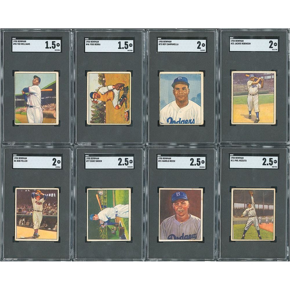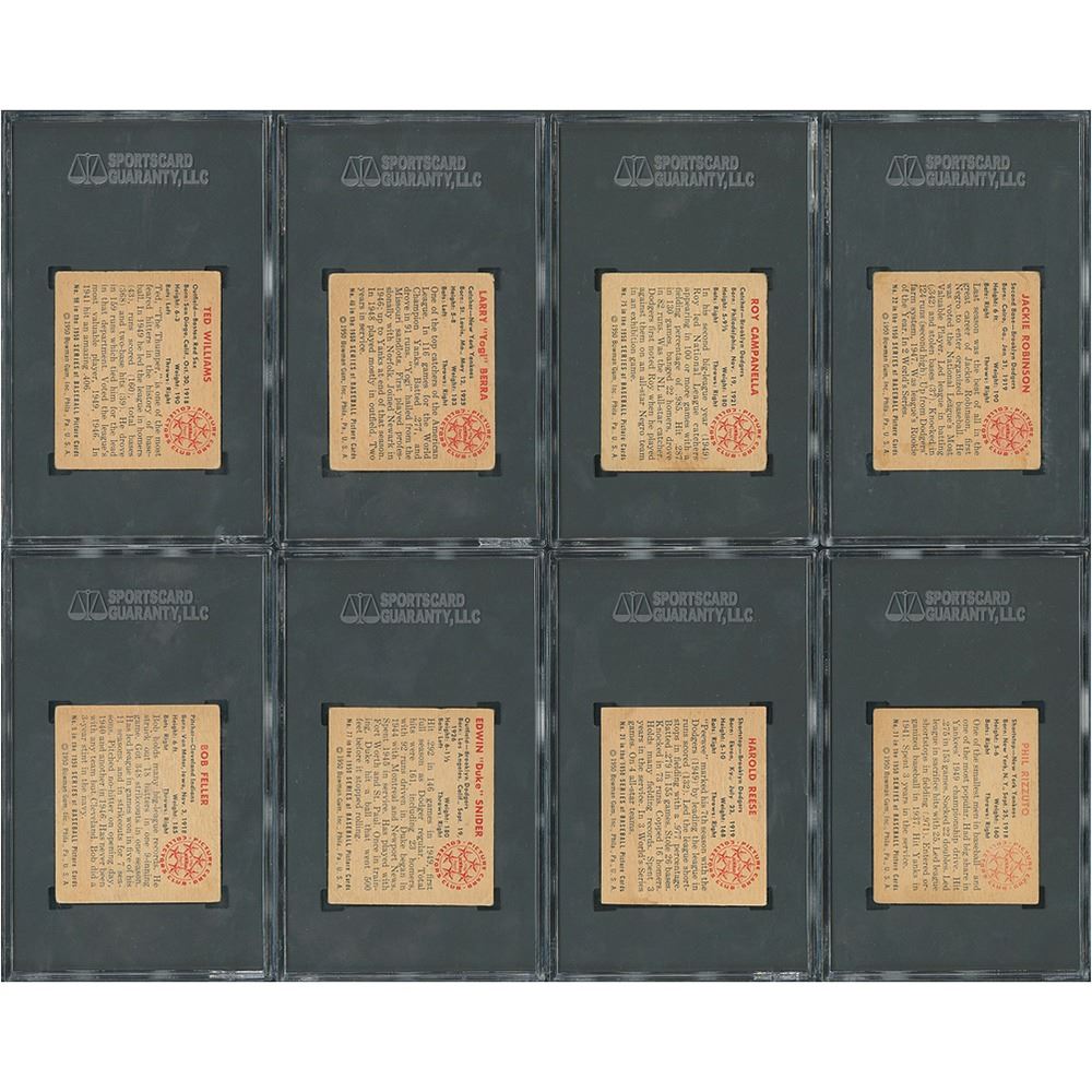 Includes: Graded Cards - SGC GOOD 2.5: 3 cards with #11 Rizzuto, 21 Reese, and 77 Snider. SGC GOOD 2: 3 cards with # 6 Feller, 22 Robinson and 75 Campanella. SGC FAIR 1.5: 2 cards with # 46 Berra and 98 Williams.