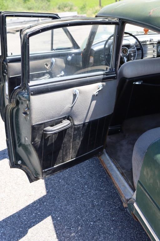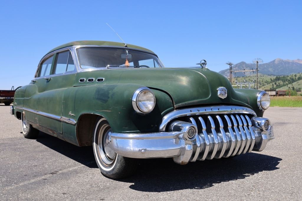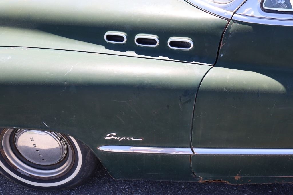 The lot features an original 1950 Buick Super Dynaflow Sedan Model 51 4-door sedan in all original factory condition. The car is in all original driving condition and shows a strong 263.3 cubic-inch Fireball L8 straight eight and three-speed manual transmission. The Fireball L8 came with 128 Max Horsepower and 217 ft-lbs Max Torque with an original base price of $2,139.00. This is truly an iconic design and the quintessential style of the late 1940's and early 1950's, so much so that this exact model was displayed on the award winning show The Marvelous Mrs. Maisel. The vehicle shows a nice chrome finish with factory dark green paint with clothe and vinyl original upholstery. This is a rare model showing the straight chrome trime, shark mouth front grille, three air inlets on either side of the hood with only 8.31% of all 1950 Buick's being a Model 51 Super Sedan. Refurbished examples sell for between $20,000 to $40,000. Factory original green's from Buick in 1950 consist of Allendale Green, Geneva Green and Kashmir Green. The vehicle shows some slight rust, but overall is a great base and all original. Please inspect the vehicle for condition and functioning order. This vehicle does not come with any warranty to function. This comes with an original owners guide.