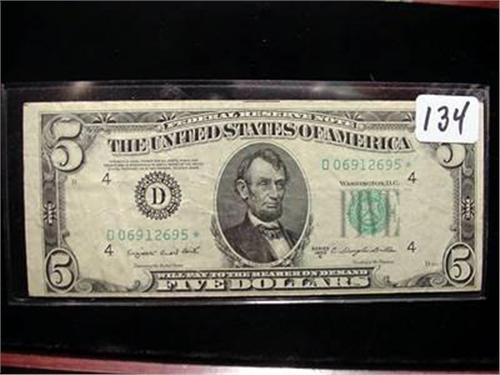 1950-C $5.00 U.S. FRN "Star Note" VF