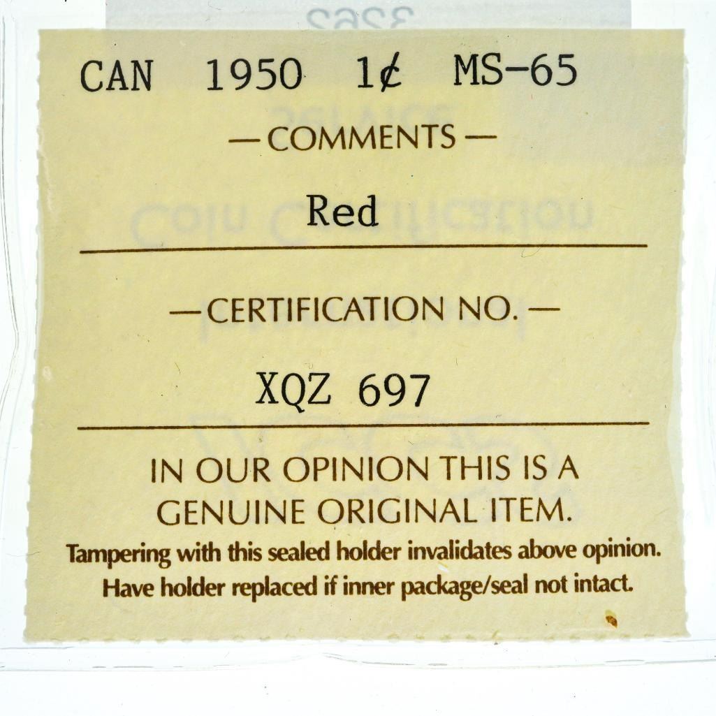 1950 Canada 1 Cent. MS-65. Red. ICCS.