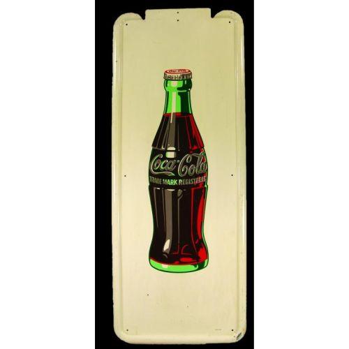 1950 Coca Cola Vertical Pilaster Sign, no button. Scuffs around edges otherwise excellent condition. 16 X 41 inches.