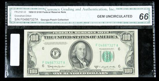 1950-D, $100 Federal Reserve Note. PCGS Gem New 65PPQ. . Fr-2161-F. A lovely Gem from the Atlanta district bank.