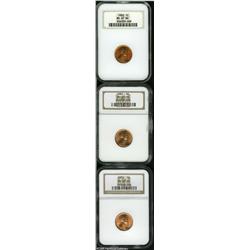 <B>1950-D 1C MS67 Red NGC,</B></I> sharply struck, a magnificent obverse, some miniscule flecks on the reverse; <B>1951 MS67 Red NGC,</B></I> boldly struck, lustrous, and attractive; and a <B>1952 MS67 Red NGC,</B></I> bright gold color, an occasional tiny fleck.<BR><I>From The Kim Mitchell Collection, Part Two.</B></I> 3 Coins Lot:5555