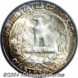 <table><tr><td><table><tr><td>1950-D 25C MS67 PCGS. Colorful, multihued iridescence blankets the obverse, the reverse is somewhat lighter in tone. Smooth, lustrous surfaces with a bold strike. Population: 28 in 67, none finer (2/04). <BR><BR><B>Important notice:</B> Heritage usually auctions material at the rate of 200-250 lots per hour. On some occasions eBay Live bid software or the Internet may not be able to keep up with the pace of the auction. We recommend placing a realistic absentee bid now as insurance to avoid disappointment. Occasionally the auctioneer may eliminate or reject an eBay Live bid, and the auctioneer may also reopen a lot after the close of the eBay live bidding (usually because we missed an audience bid), and may reject your bid even if it shows you as the winning bidder. By bidding via eBay Live, you agree that Heritage may award the lot to another bidder at its sole discretion under the circumstances described above or any other reasonable circumstances. Since eBay bids are not shown to us until we open the lot on the floor, we treat those bids just like floor bids. In most cases the floor responds before the eBay bid is presented to us, due to Internet lag time, so for consistency we have made it a policy that floor bids are always considered first over tie eBay live bids. Also please note that all Heritage lots purchased through eBay Live carry a 20% Buyer's Premium. Please make sure you read the Terms and Conditions before you bid. <BR><BR><B>IMPORTANT ANNOUNCEMENT ABOUT RESERVES:</B> Heritage now divulges all reserves on its web site 7 days before every auction. If you want to know whether the reserve on this lot has been met, and if not, what the reserve amount is, please visit this lot page on the HeritageCoin.com web site, or email: bid@HeritageGalleries.com </span></font></td></tr></table></td></tr></table>
