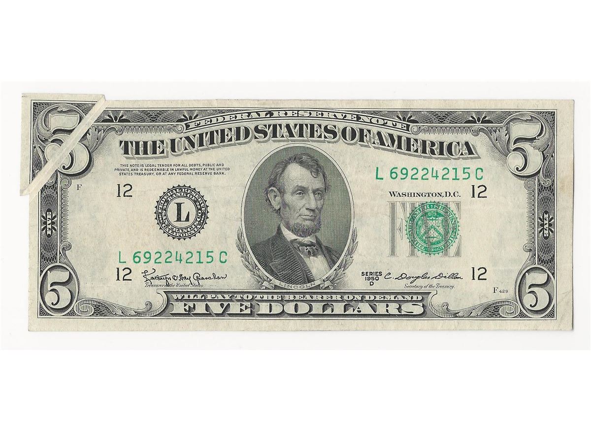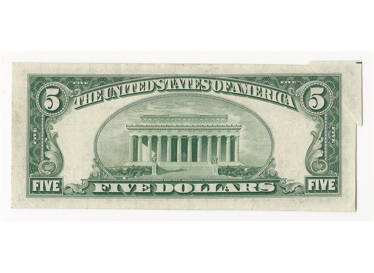 One 1950-D $5 Federal Reserve Note ERROR Gutterfold.