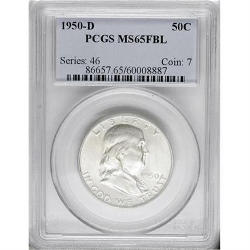 <B>1950-D 50C MS65 Full Bell Lines PCGS.</B></I> PCGS Population (431/45). NGC Census: (119/3). Numismedia Wsl. Price for NGC/PCGS coin in MS65: $400. (#86657)<BR><BR><b>Shipping:</b> Coins & Currency (<a target="_blank" href="http://www.heritageauctions.com/common/shipping.php">view shipping information</a>)