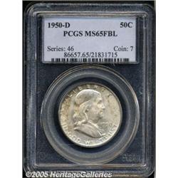 <B>1950-D 50C MS65 Full Bell Lines PCGS.</B></I> Sharply struck design elements transcend the bell lines to include the well defined bell lettering. The well preserved surfaces are lustrous with speckled gold-brown patina.