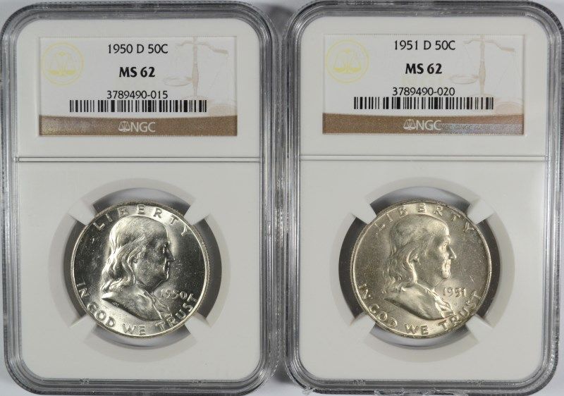 1950-D, & 51-D FRANKLIN HALF DOLLARS NGC MS-62