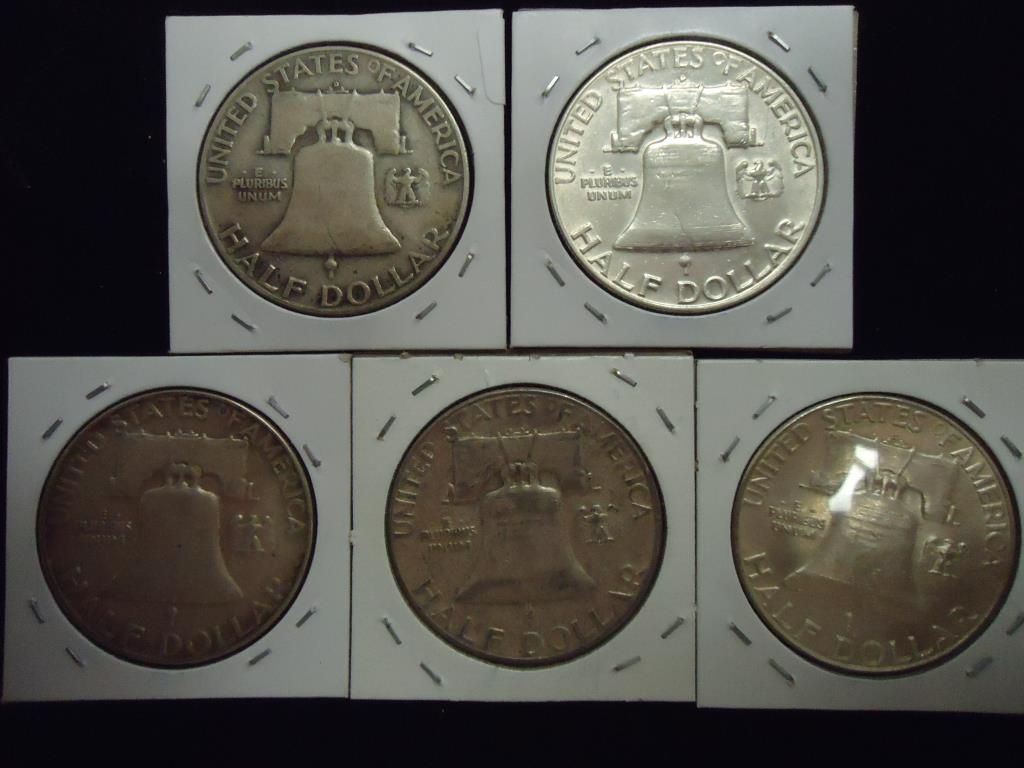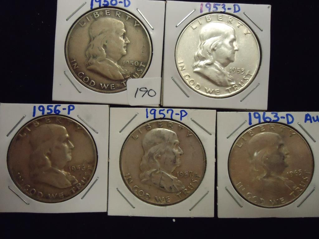 1950-D,53-D,56,57 & 63-D FRANKLIN HALF DOLLARS