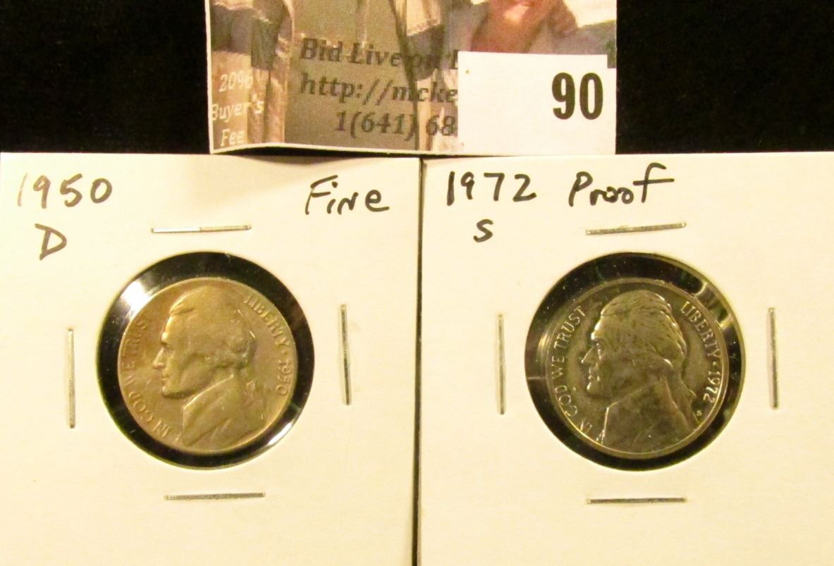 1950 D Fine & 1972 S Proof Jefferson Nickels.
