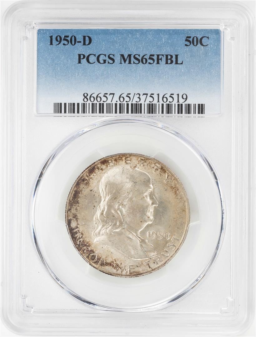 One 1950-D Franklin Half Dollar Coin PCGS MS65FBL. PCGS Graded.