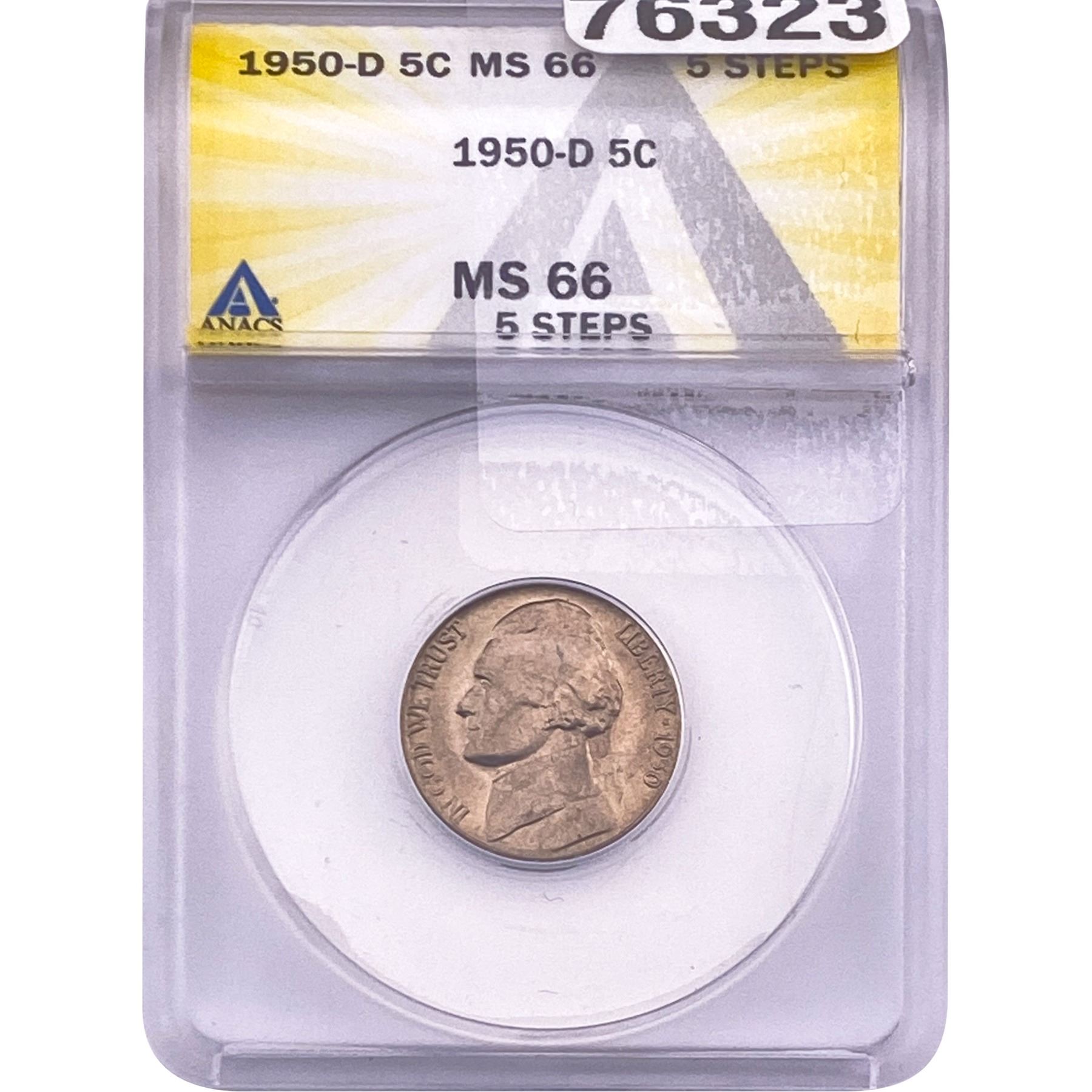 1950-D Jefferson Nickel ANACS MS66 5 Steps