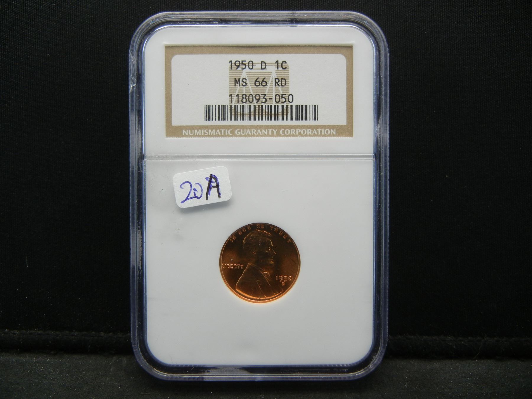 1950-D Lincoln Wheat Cent. Slabbed by NGC as MS 66 Red