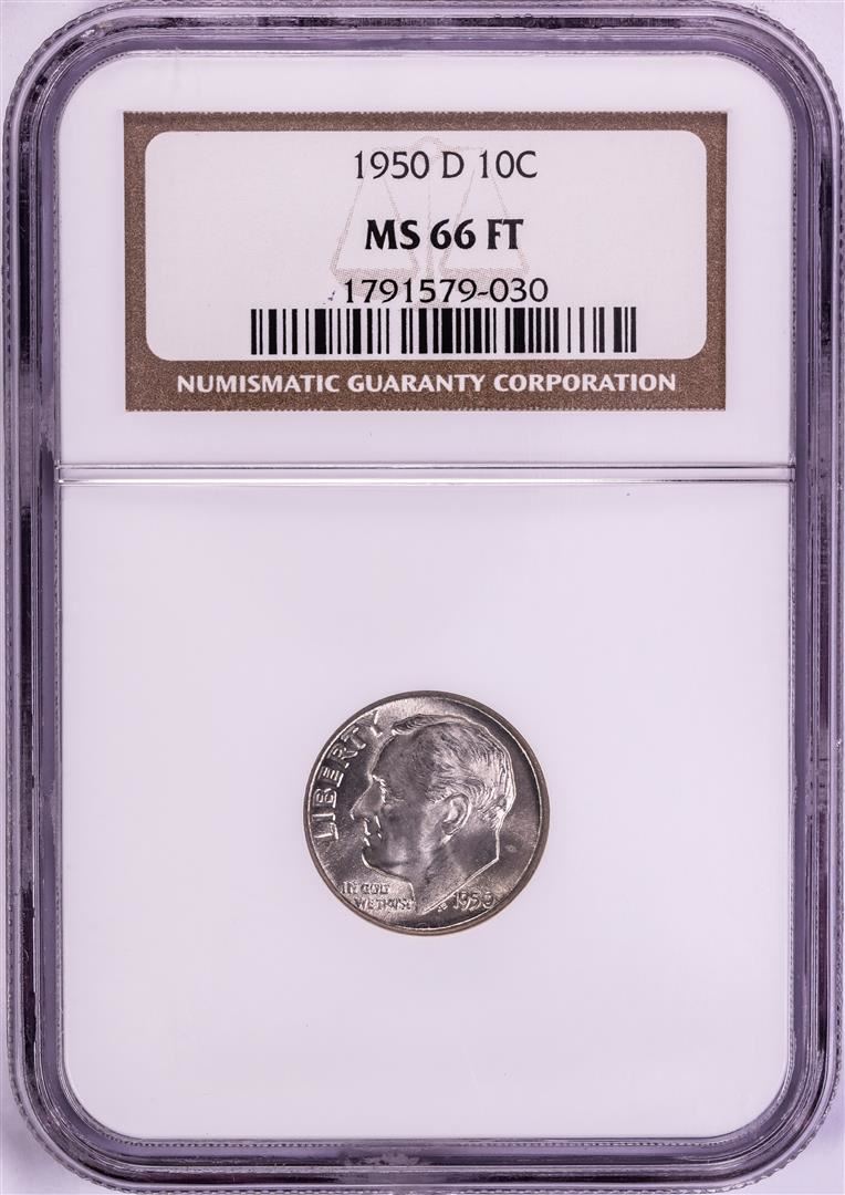 One 1950-D Roosevelt Dime Coin NGC MS66FT. NGC Certified.