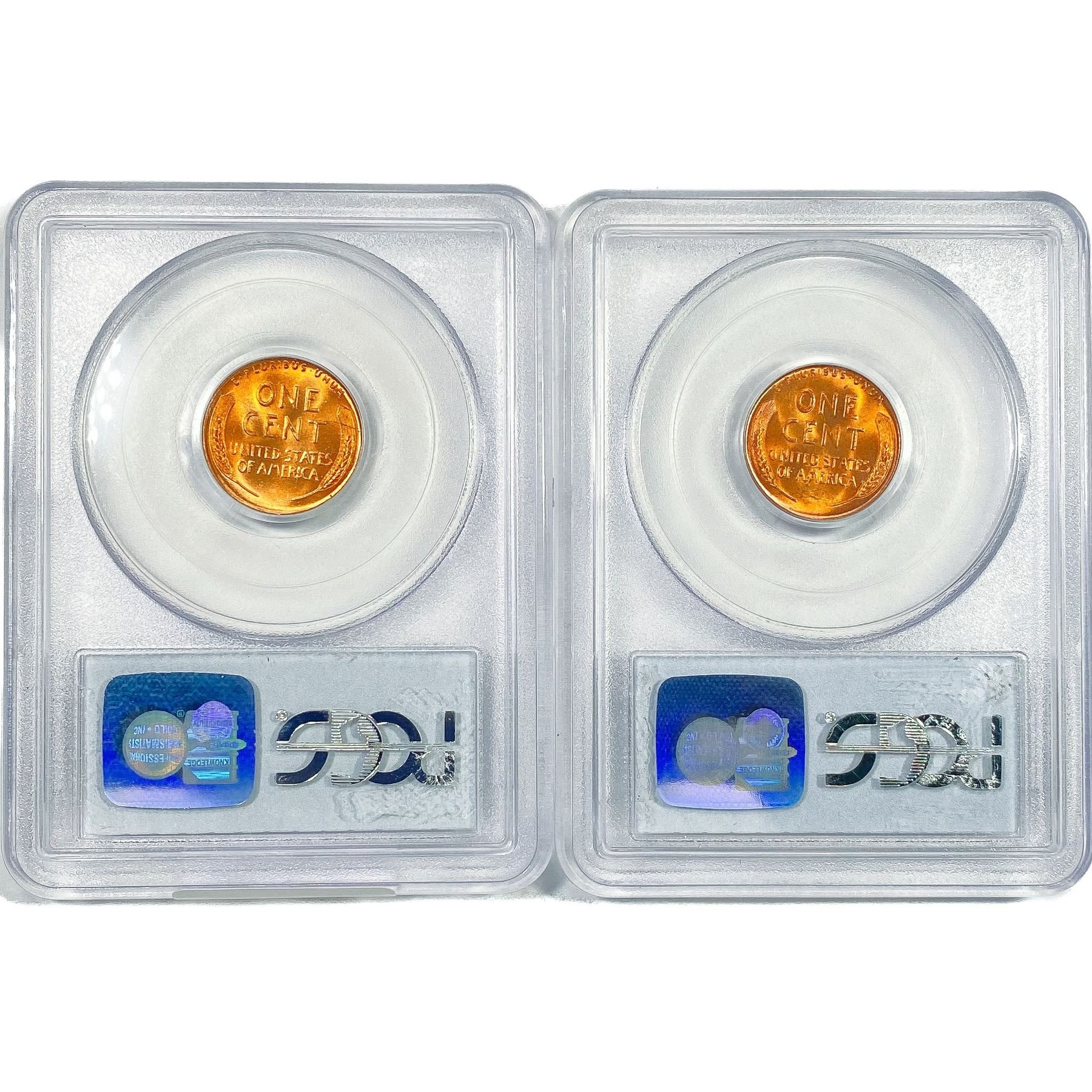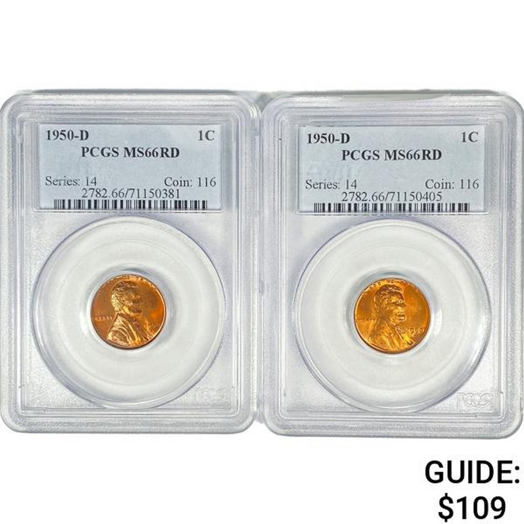1950-D Set (2) Wheat Cent PCGS MS66 RD